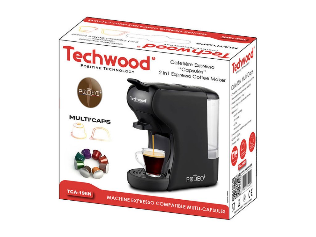 Připravte si svůj oblíbený nápoj rychle a pohodlně s kapslovým kávovarem Techwood. TCA-196N vám umožní připravit kávu, horkou čokoládu nebo čaj. Je vybaven nádržkou na vodu o objemu 600 ml a může se pochlubit tlakem 19 barů. Jeho obsluha je navíc jednoduchá a pohodlná, takže s ním nebudete mít žádné problémy. Kávovar je kompatibilní s kapslemi Nespresso a Dolce Gusto.