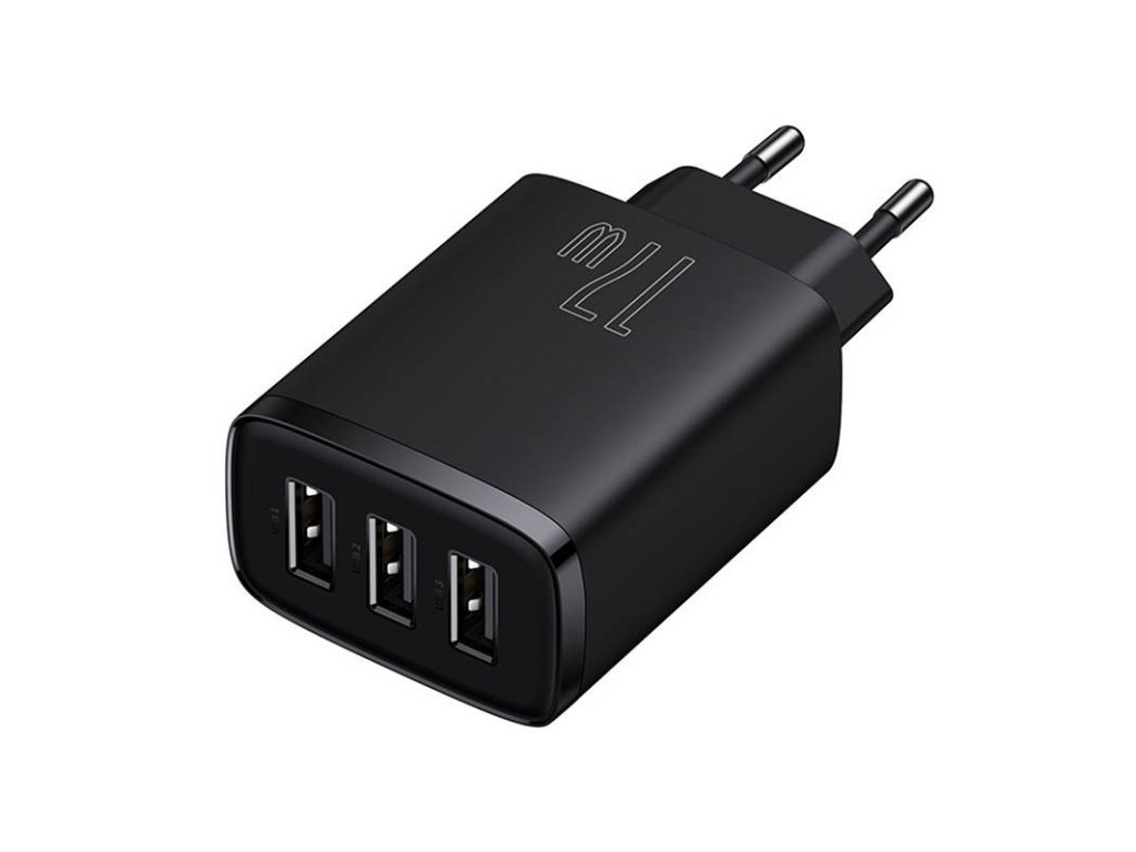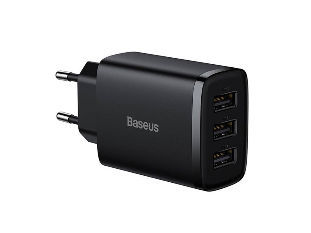 Kompaktní rychlonabíječka Baseus, 3x USB, 17 W (černá)