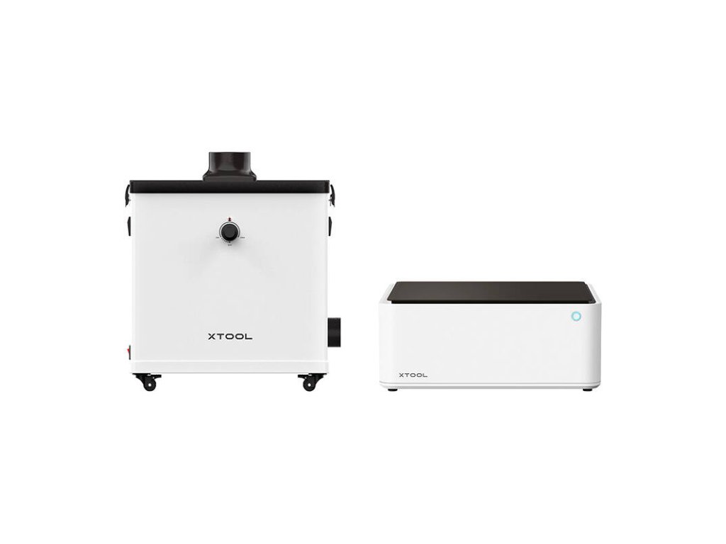 Sadu doplňuje čistič kouře xTool, který díky pokročilému filtračnímu systému odstraňuje 99,97 % škodlivých částic a zápachu. Třívrstvý filtr zahrnující HEPA filtr a filtr s aktivním uhlím zajišťuje optimální pracovní podmínky a odstraňuje škodliviny ze vzduchu při řezání a gravírování. Její praktická kolečka umožňují snadné přemístění čističky na místo, kde je potřeba.
