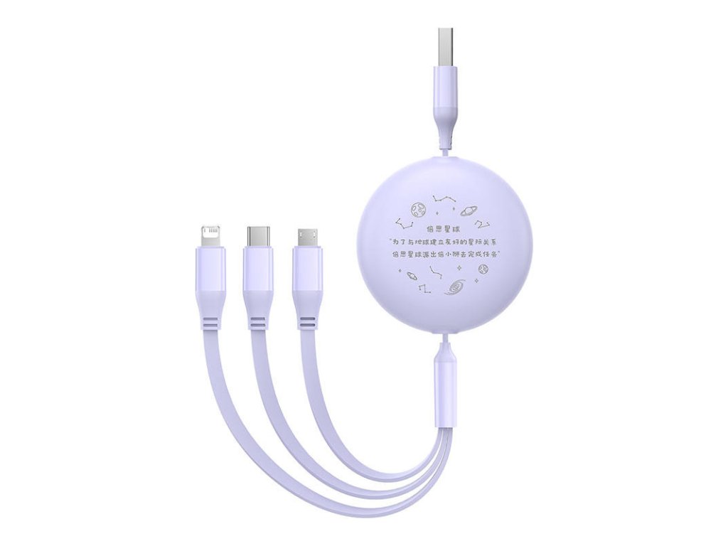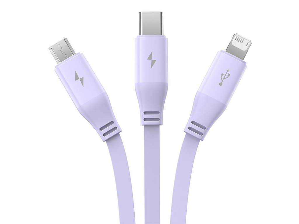 Nabíjecí kabel 3v1 Baseus USB na USB-C, USB-M, Lightning 3,5A, 1,1 m (fialový)