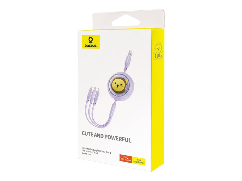 Nabíjecí kabel 3v1 Baseus USB na USB-C, USB-M, Lightning 3,5 A, 1,1 m (fialový)