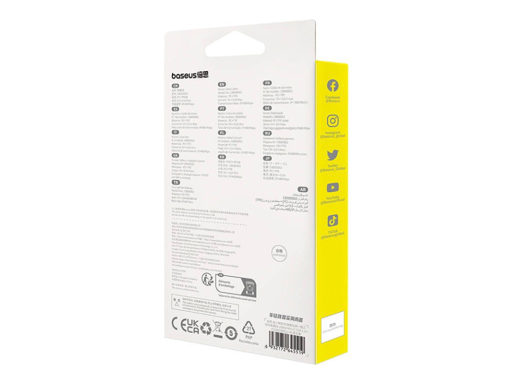 S kabelem Baseus můžete nabíjet svá zařízení při proudu 3,5 A. Výrobek nabízí porty micro USB, Lightning a USB-C, takže k němu můžete připojit 3 smartphony najednou. Kabel navíc umožňuje přenášet data rychlostí 480 Mb/s. Nyní můžete kopírovat fotografie nebo videa během okamžiku.