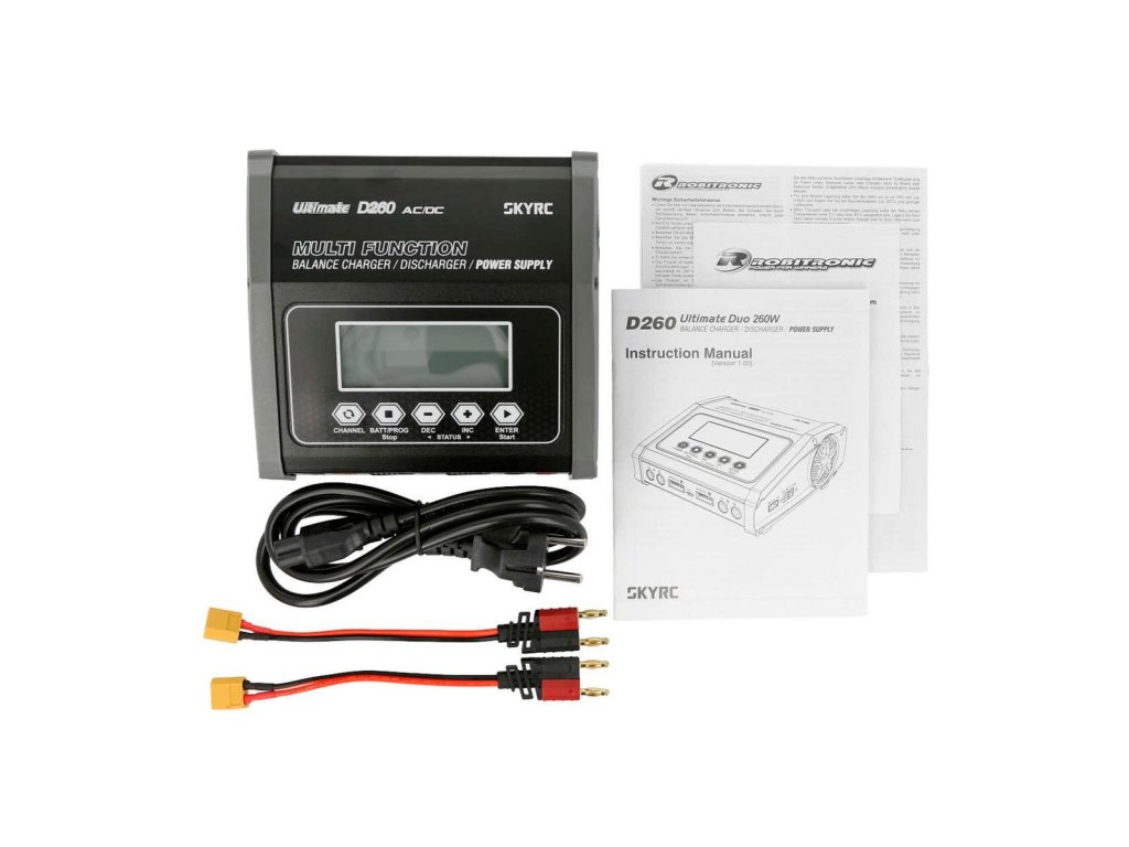 SkyRC D260 je dvoukanálová nabíječka s intuitivním rozhraním a designem tlačítek, díky nimž je ovládání zařízení hračka. Dva nezávislé obvody mají schopnost nabíjet baterie až do 6S s maximálním proudem 14A na kanál. Model D260 je nejlepší volbou pro modelářské nadšence.