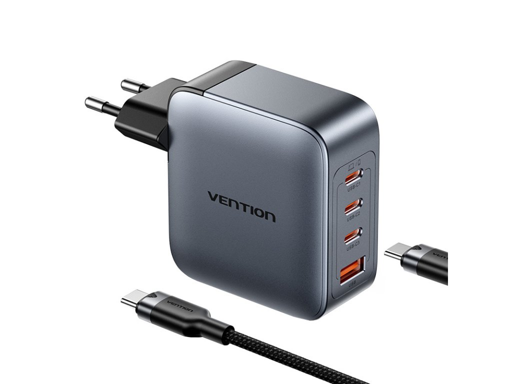 Vention TZ-FET-EU je síťová nabíječka, která využívá technologii GaN V k dodávce až 100 W výkonu při zmenšené velikosti zařízení. V porovnání se standardní 96W nabíječkou je až o 20 % menší. Dokáže rychle nabít zařízení, jako je MacBook Pro (36 % za 30 minut), iPhone 16 Pro (54 %), iPad Pro (45 %) a Samsung S24 Ultra (65 %). Dodává se s odolným 1m kabelem USB-C na USB-C s maximálním výkonem 100 W.