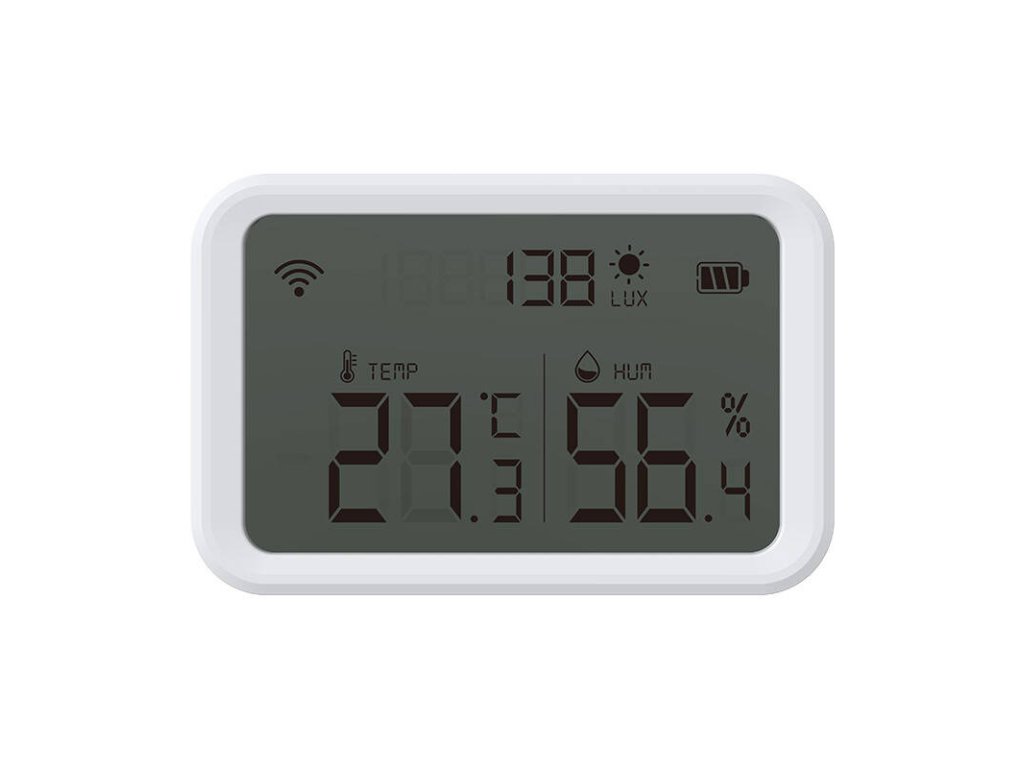 Snímač můžete úspěšně namontovat na zeď nebo jej umístit na jakýkoli rovný povrch. Indikátor LED zobrazuje provoz zařízení, které spolehlivě funguje ve dne i v noci. Jednoduchá konfigurace přes Wi-Fi pomocí aplikace Tuya Smart usnadňuje používání. Přehledný displej zařízení navíc poskytuje informace o teplotě, vlhkosti a úrovni osvětlení v reálném čase