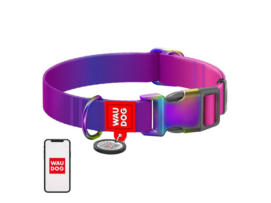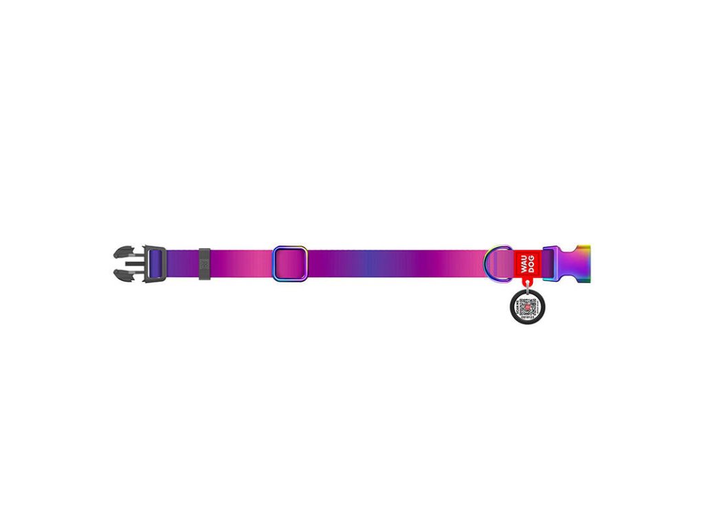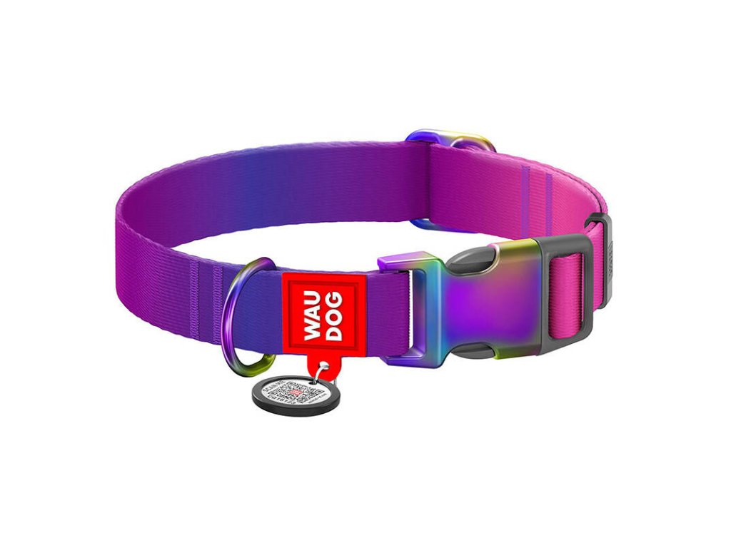 Nylonový obojek pro psy s QR kódem WAUDOG 15 mm široký, 25-35 cm dlouhý (fialový).