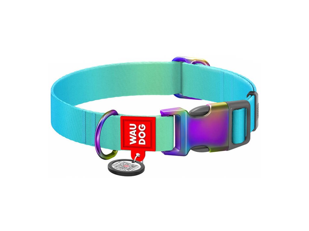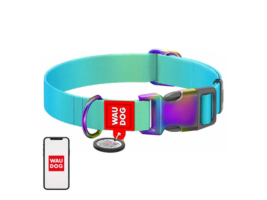 Nylonový obojek pro psy s QR kódem WAUDOG 15 mm široký, 25-35 cm dlouhý modrý