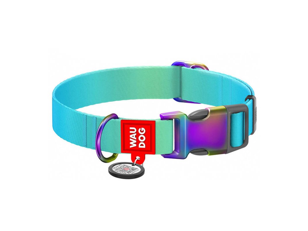 Nylonový obojek s QR kódem pro psa Waudog gradient velikosti L (modrý).