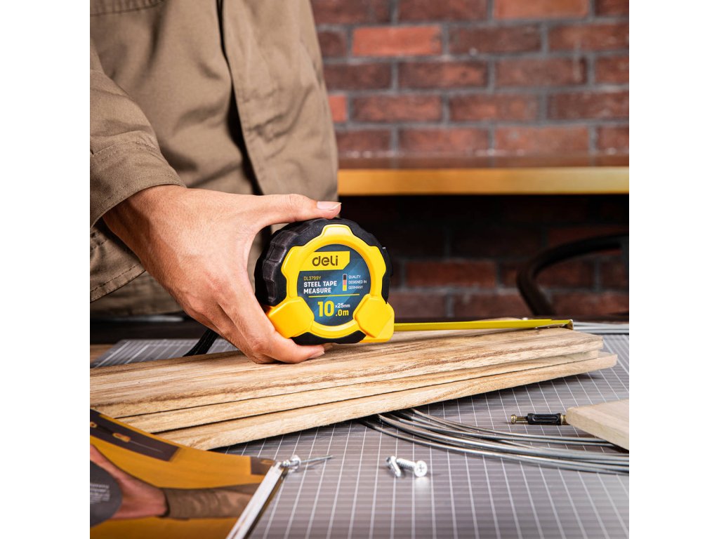 Ocelový metr 10m/25mm Deli Tools EDL3799Y (žlutý)