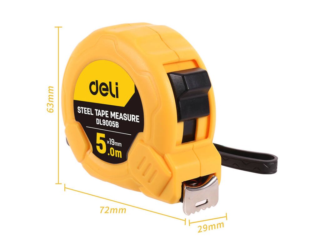 Praktický svinovací metr Deli o délce 5 metrů je univerzální nástroj pro domácí i profesionální použití. Můžete s ním snadno a přesně měřit stěny nebo podlahy. Snadno ovladatelné tlačítko a automatická aretace vám usnadní samostatnou práci. Takový svinovací metr se hodí na každé stavbě a při většině renovací. Ať už pracujete na rozsáhlém projektu, nebo například renovujete malou místnost.