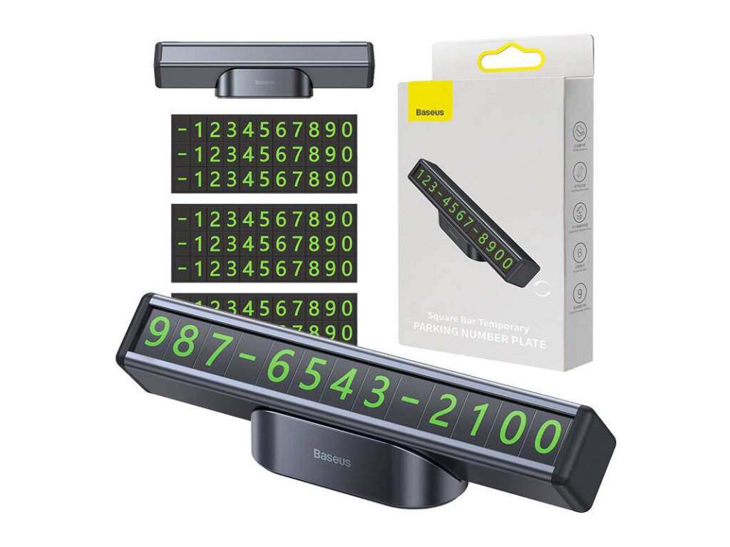 Nehoda, parkování na nepovoleném místě - tyto a podobné situace vyžadují rychlý kontakt s poškozeným. Proto společnost Baseus navrhla tabulku CNFT000001, na kterou můžete zadat své telefonní číslo a viník nehody nebo příslušné služby vás budou okamžitě kontaktovat. Příslušenství se připevňuje na palubní desku a díky svému kompaktnímu provedení vám nebude bránit ve výhledu během jízdy. Jeho pevná konstrukce je zodpovědná za jeho odolnost a můžete na něj také umístit 2 telefonní čísla.