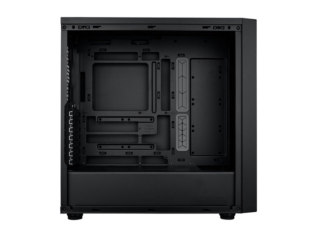 Skříň byla navržena pro základní desky se zadním připojením, což znamená, že většina kabelů je vedena zadní částí místo přední. Díky tomu je vnitřek skříně uklizený a působí čistším dojmem. Za základní deskou je k dispozici dalších 33-35 mm prostoru, což výrazně zjednodušuje správu kabelů a zlepšuje proudění vzduchu.