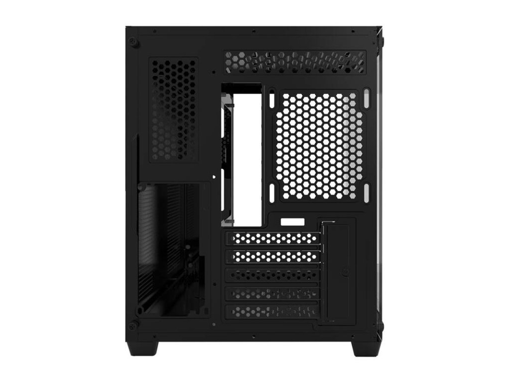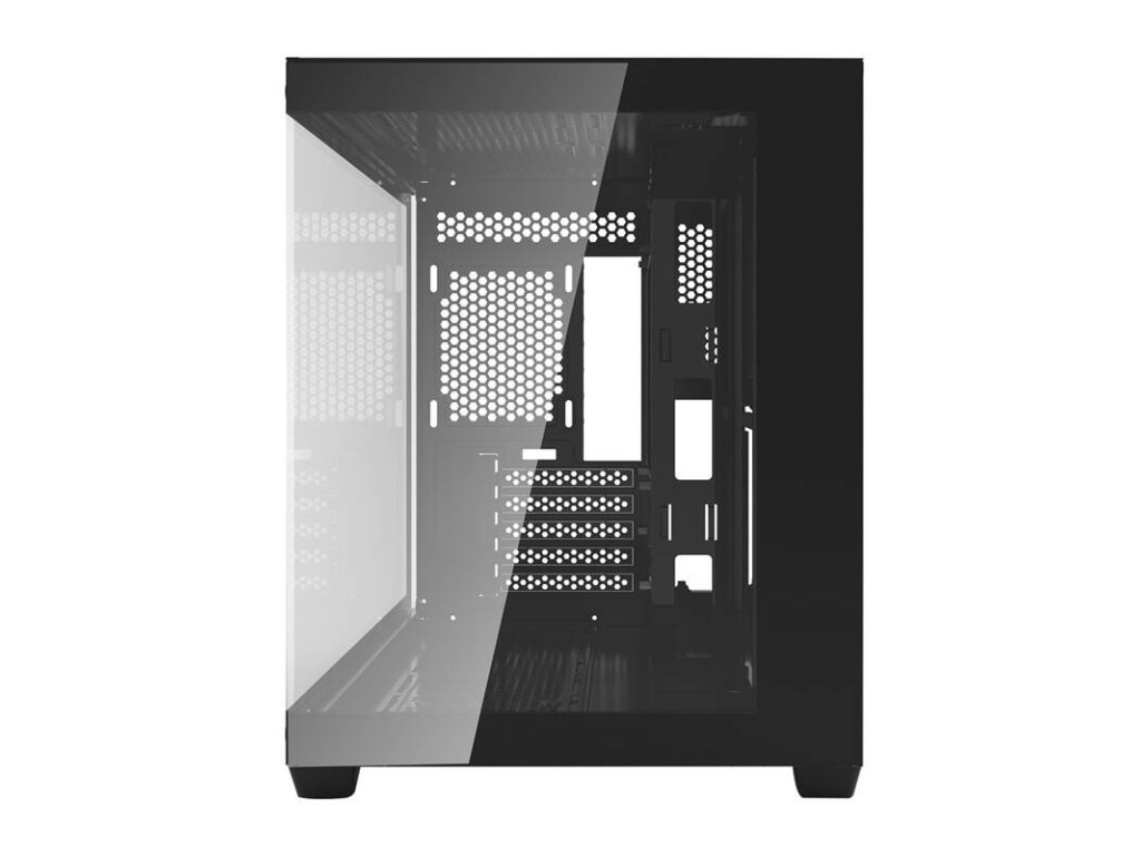 Skříň Darkflash C285MP je z obou stran vybavena panely z tvrzeného skla o tloušťce 0,7 mm pro ochranu komponent a estetický vzhled. Průhledné bočnice umožňují plný pohled do interiéru a odhalují komponenty - můžete například namontovat ventilátory s RGB podsvícením. Poznámka: samotné šasi nemá předinstalované podsvícení.