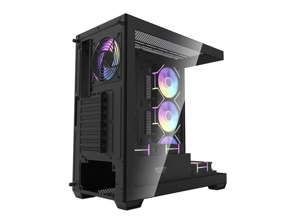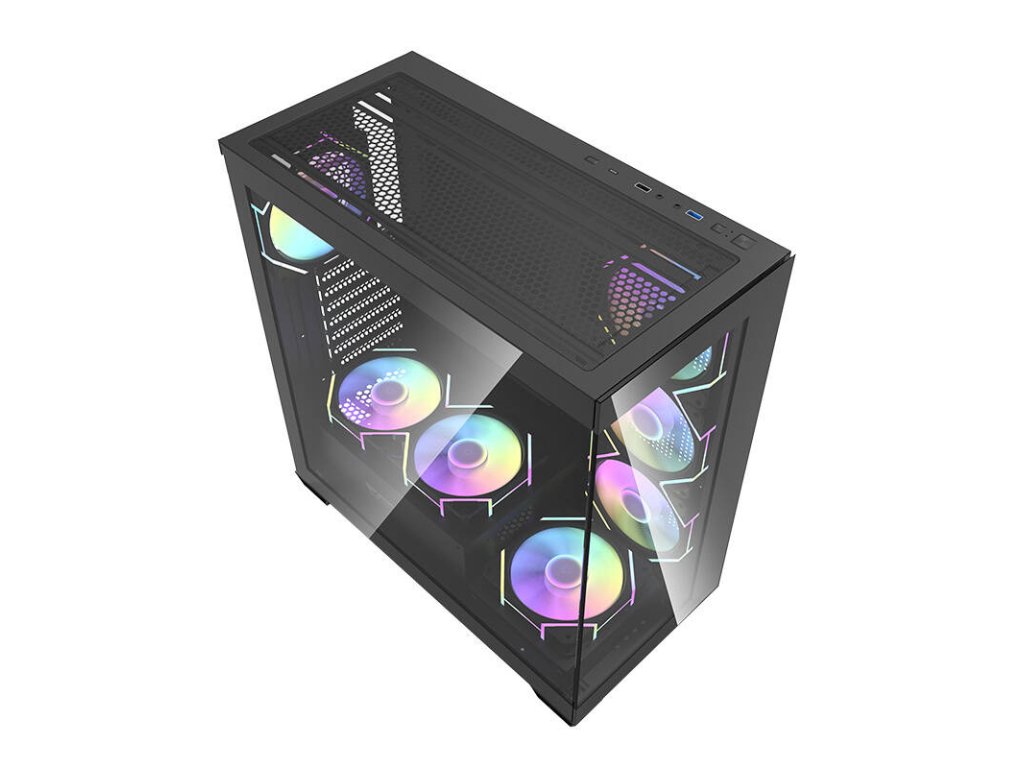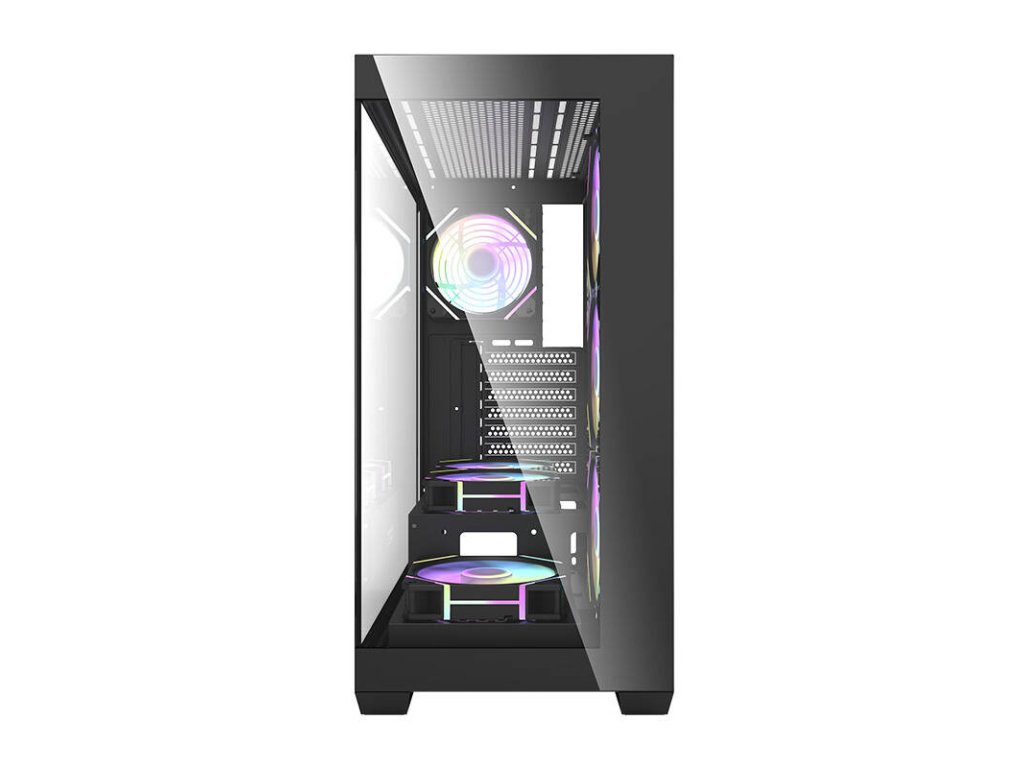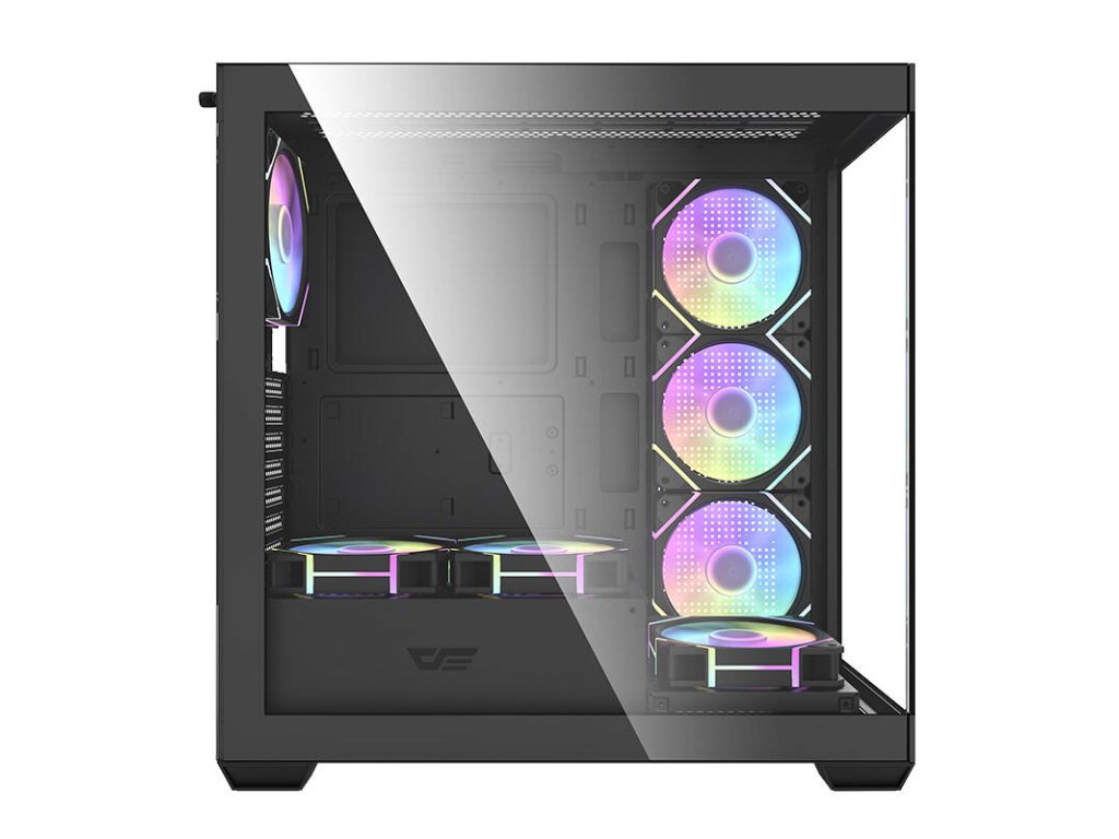 Darkflash DS900 je moderní řešení pro náročné uživatele, kteří ocení estetiku i funkčnost. Výrazný černý design s panoramatickou konstrukcí bez A-sloupků, která je vybavena dvěma plně průhlednými skleněnými stěnami, nejenže vypadá efektně, ale také poskytuje vynikající viditelnost komponent. Šasi je navrženo tak, aby poskytovalo optimální chlazení, výkon a všestrannost a zároveň nabízelo snadné úpravy a rozšíření počítačových systémů. V balení naleznete 7 120mm ventilátorů ARGB.