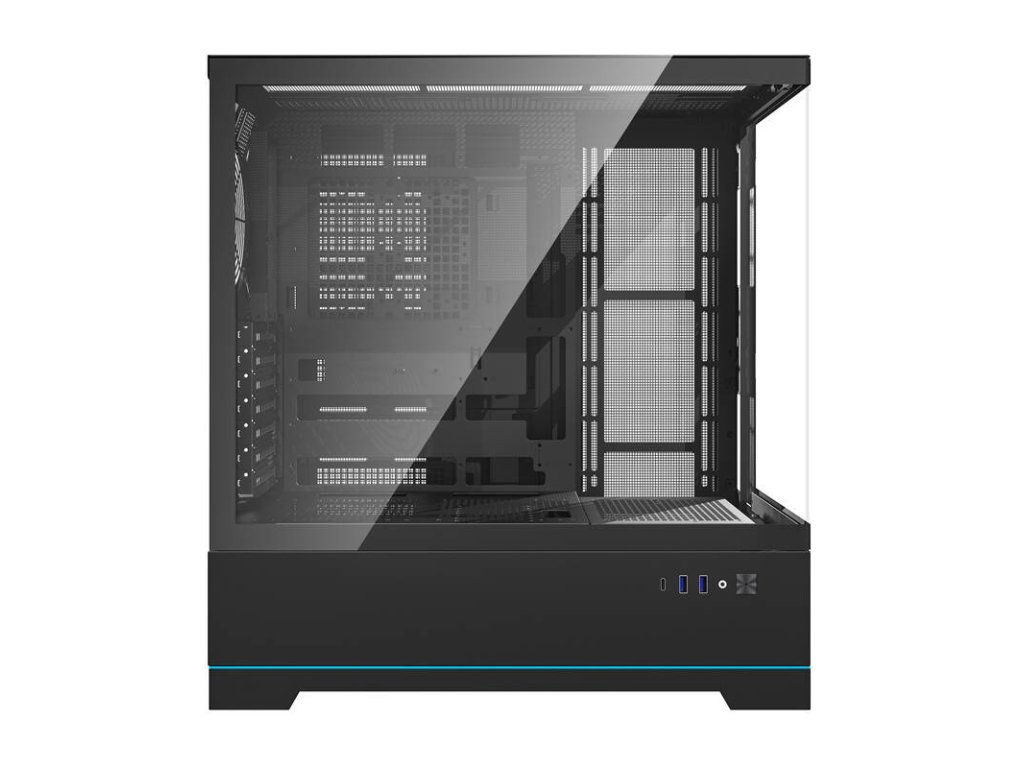 Darkflash DY451 nabízí pohodlné a intuitivní ovládání z předního panelu. Uživatelé zde najdou tlačítka pro zapnutí a restartování počítače a také porty: 2 x USB 3.0, USB-C a zvukový vstup. Uživatelé tak mohou rychle připojit externí zařízení a spravovat systém chlazení.
