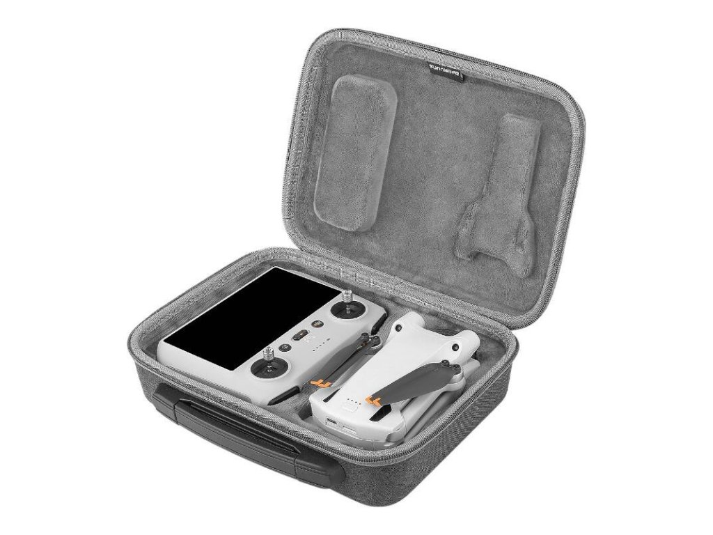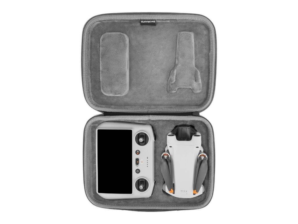 Pouzdro Sunnylife umožňuje bezpečné uložení a přepravu dronu DJI Mini 3 nebo Mini 3 Pro spolu s ovladačem DJI RC nebo RC-N1, což je skvělé řešení pro nadšence do letecké fotografie