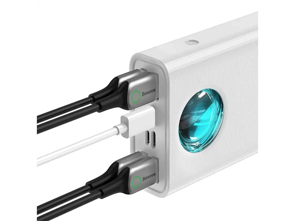 Powerbanka Baseus Amblight 30000 mAh slouží k rychlému nabíjení zařízení, jako je smartphone nebo notebook. Výrobek využívá výkon 65 W a funguje s protokoly rychlého nabíjení PD, QC, SCP atd. díky 5 různým portům k němu můžete připojit několik zařízení najednou a LED displej vám poskytne nejdůležitější informace o provozu powerbanky.