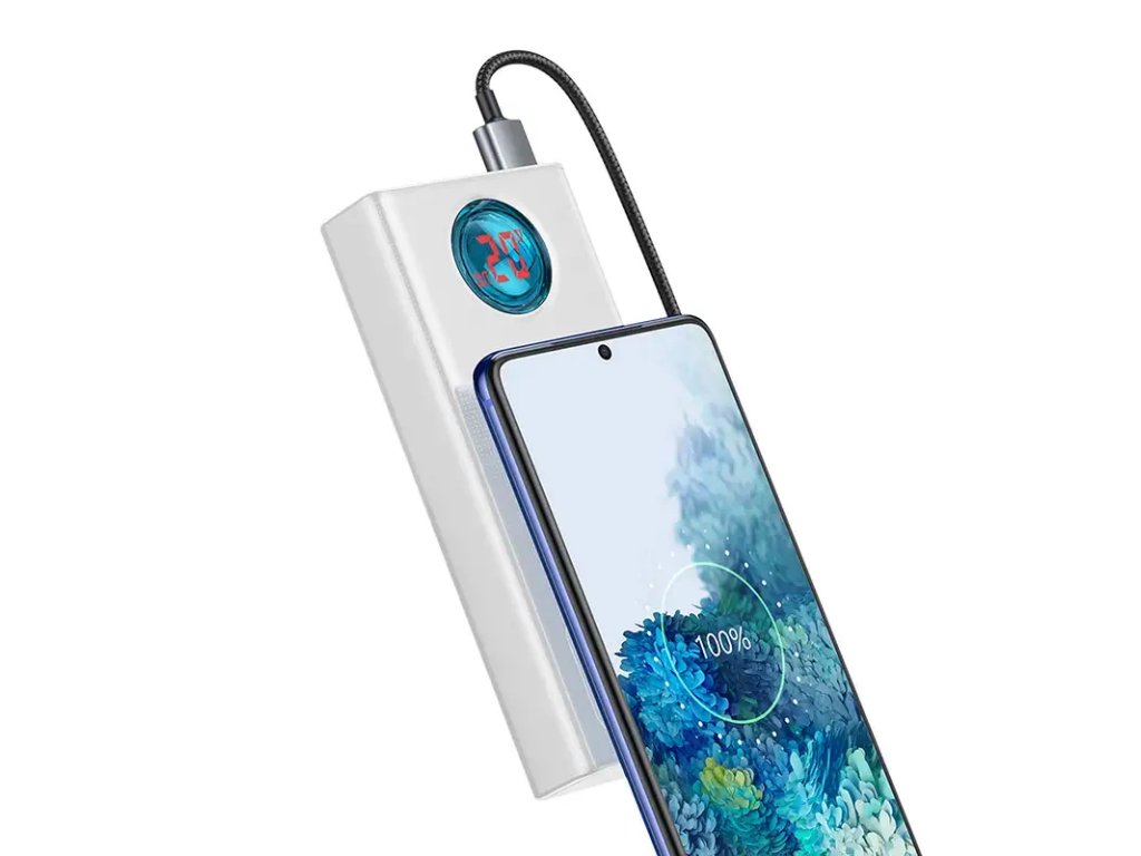 Powerbanka Baseus Amblight umožňuje nabíjet až 5 zařízení najednou, čímž šetří váš čas. Navíc pracuje s protokoly rychlého nabíjení, jako jsou PD3.0, QC3.0, FCP, SCP atd. To znamená, že můžete okamžitě obnovit napájení smartphonů od společností Apple, Huawei, Samsung, Xiaomi a mnoha dalších. Díky tomu můžete svůj Samsung S20 Ultra nabít přibližně za 60 minut.