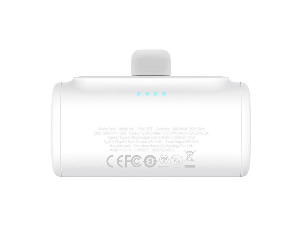 Baseus Compact 5000mAh Powerbank, 20W, USB-C (bílá).