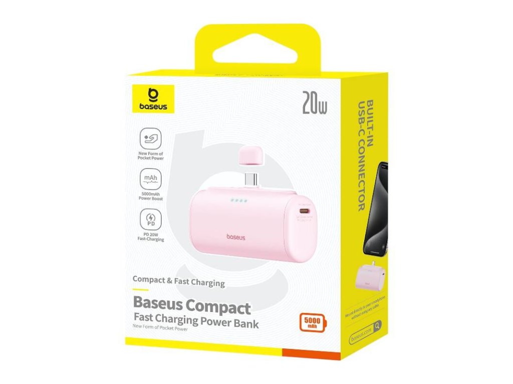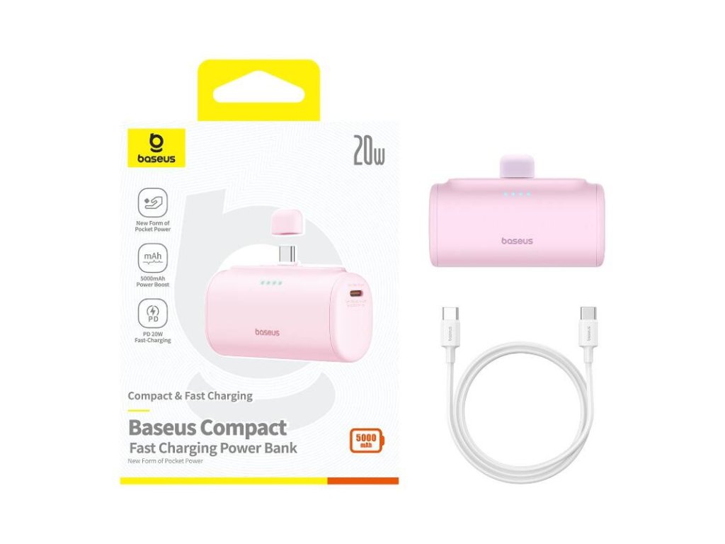 Powerbanka Baseus Compact USB-C 5000mAh, 20W (růžová)