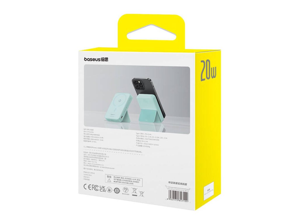 Vybavte se prostornou powerbankou Baseus Magnetic, která je vybavena portem USB-C a umožňuje také rychlé a bezpečné bezdrátové nabíjení s maximálním výkonem 15 W. Powerbanka podporuje protokol rychlého nabíjení PD 20W a má kapacitu až 10 000 mAh. Praktický displej poskytuje informace o stavu baterie a díky skládacímu stojánku funguje výrobek také jako držák telefonu