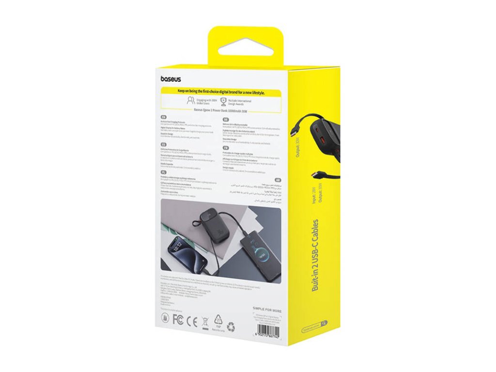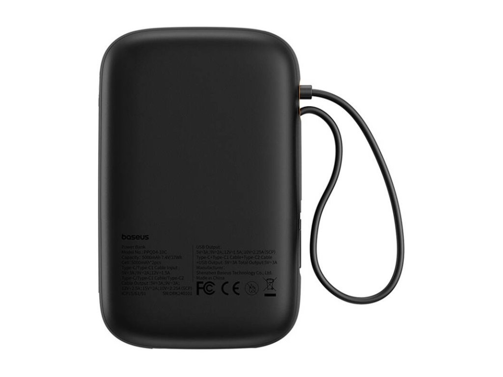 Baseus QPow 2 umožňuje nabíjet až čtyři zařízení současně díky vestavěným kabelům USB-C a dalším portům USB. Tato funkce je ideální pro ty, kteří potřebují nabíjet několik zařízení najednou, například smartphone, tablet, bezdrátová sluchátka nebo chytré hodinky. To vše je možné díky pokročilým protokolům rychlého nabíjení, jako jsou PD3.0, QC3.0, SCP a další.