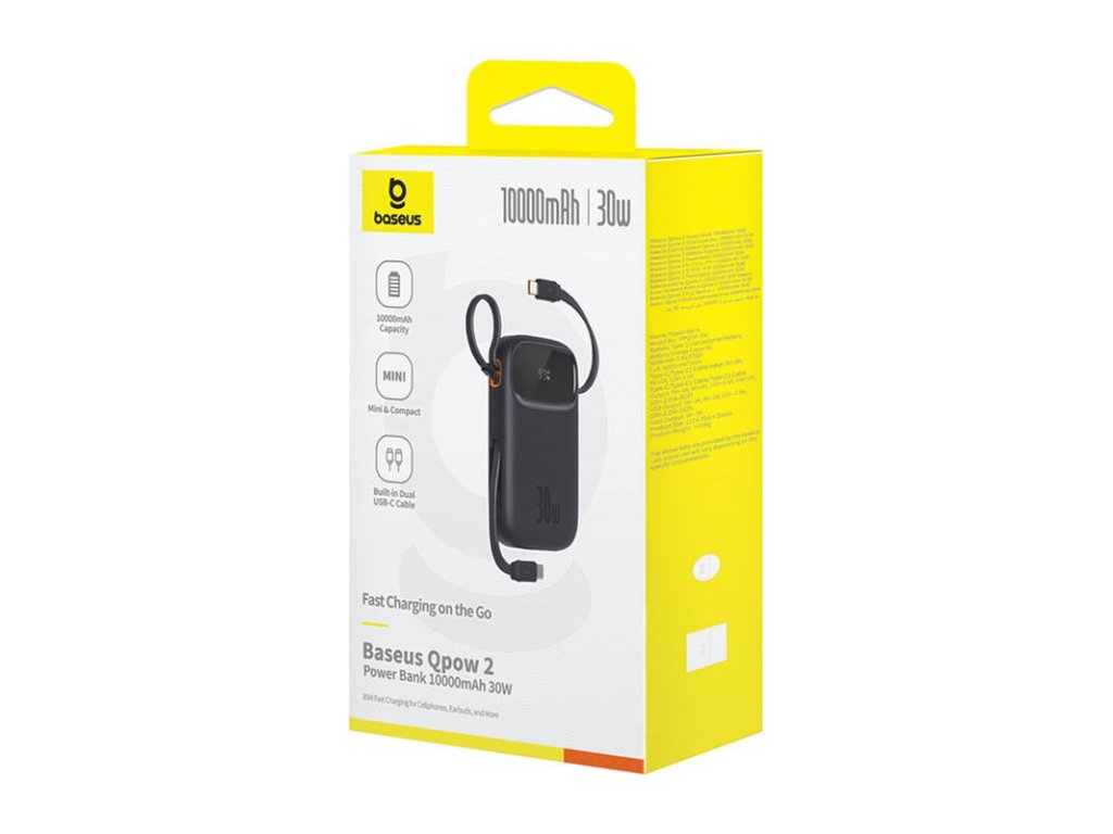 Baseus QPow 2 je powerbanka, která kombinuje vysokou kapacitu s pohodlným přenosným designem. S kapacitou 10 000 mAh a 30W rychlonabíjením je ideálním každodenním společníkem, který vám poskytne energii, kdykoli ji potřebujete. Díky své mobilitě a chytrým funkcím je Baseus QPow 2 ideální volbou pro aktivní uživatele, kteří si cení pohodlí a spolehlivosti.
