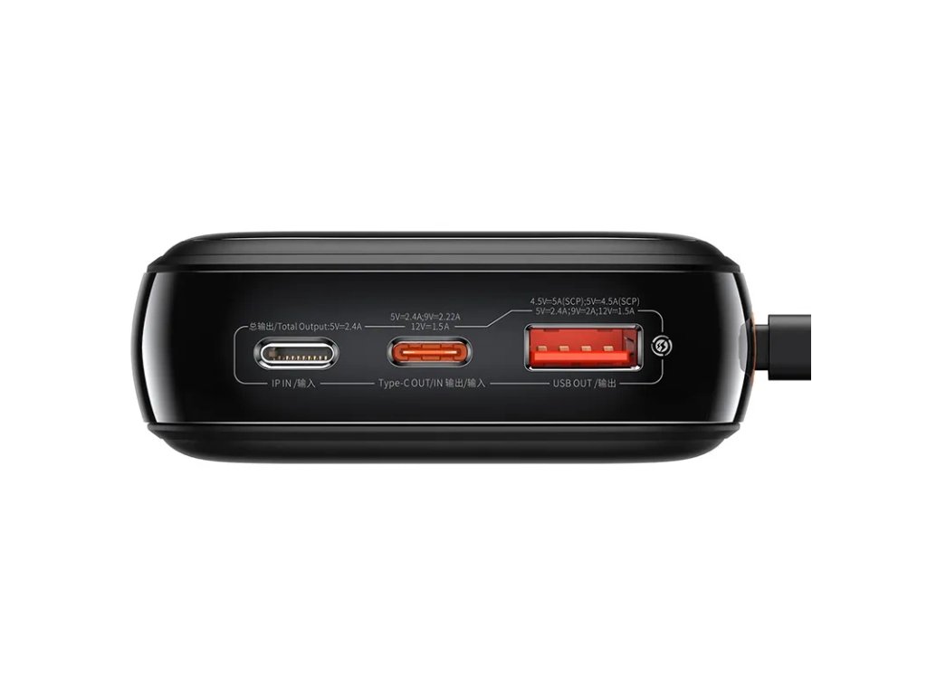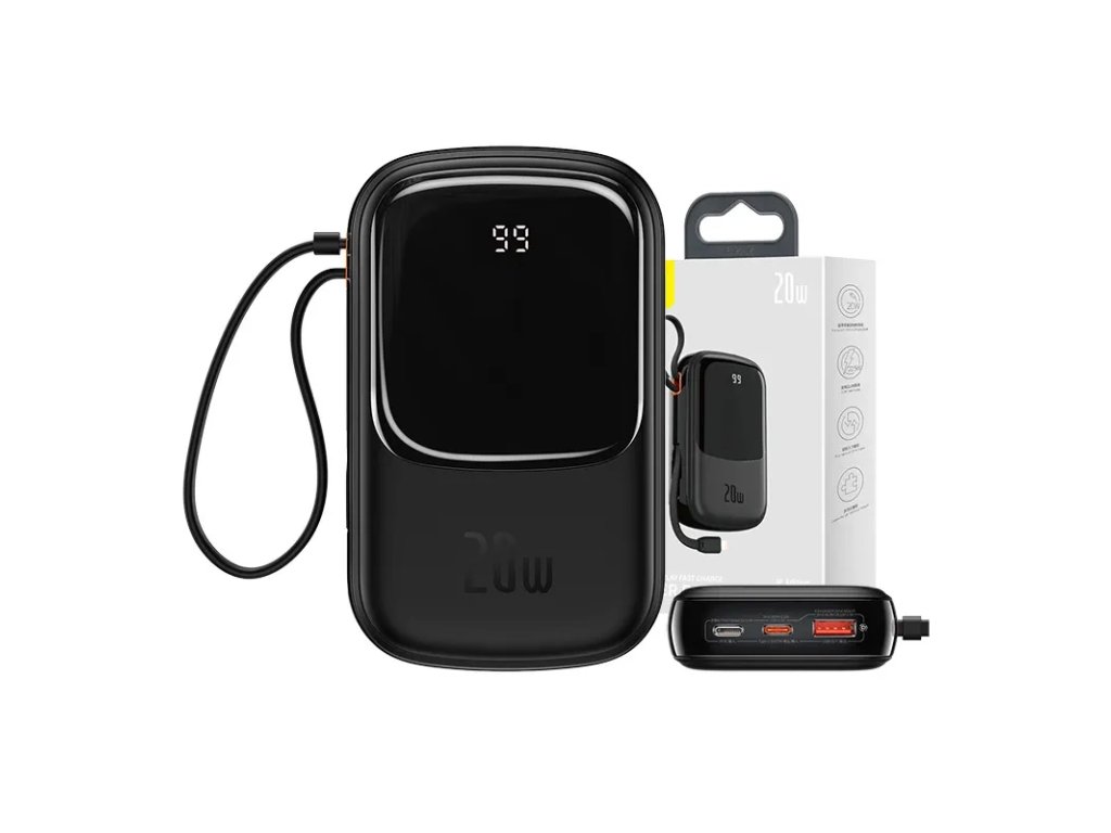 Powerbanka Baseus Qpow Pro s integrovaným kabelem Lightning je vybavena porty USB-C a USB, což jí umožňuje nabíjet až 3 zařízení současně. Podporuje také protokoly rychlého nabíjení SCP, FCP, QC a PD a nabije Apple 13 na 50 % za pouhých 30 minut.