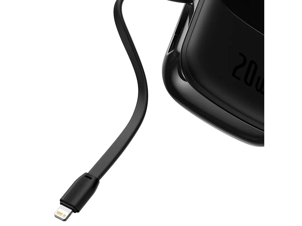 Powerbanka Baseus Qpow PRO s kabelem Lightning, porty USB-C a USB, 20000 mAh, 20 W (černá)