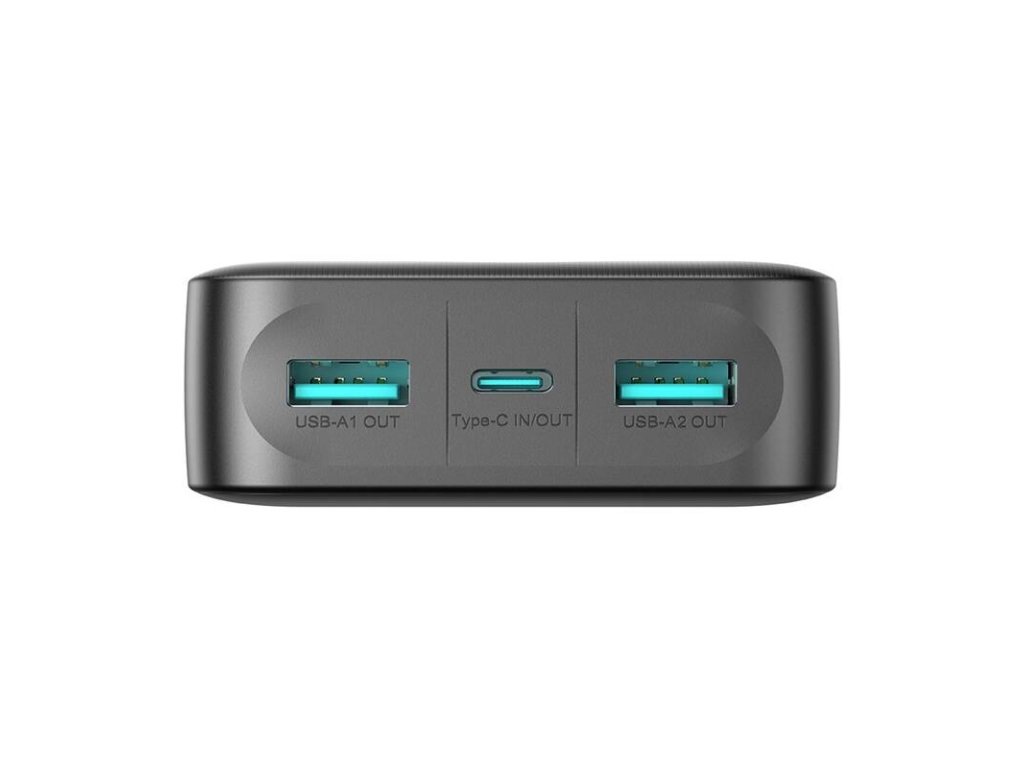 Powerbanka je vybavena porty, které umožňují nabíjet až tři zařízení současně. Dva porty USB-A (každý 12 W) a port typu C (12 W) umožňují nabíjet telefony, tablety, sluchátka a další zařízení současně, aniž byste museli přestat nabíjet jedno a připojit jiné.