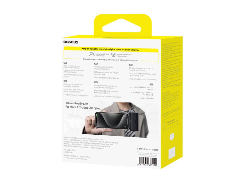 Zařízení Baseus Compact můžete používat dvěma způsoby. Je vybaven integrovaným konektorem USB-C, který je kompatibilní s nejoblíbenějšími mobilními zařízeními na trhu, takže jej můžete připojit přímo k zařízením nebo použít kabel, který najdete v sadě. Ať už používáte iPhone řady 15, Samsung S22/S23, OnePlus 8 Pro nebo Google Pixel 7Pro, tato powerbanka si poradí s jakýmkoli zařízením.
