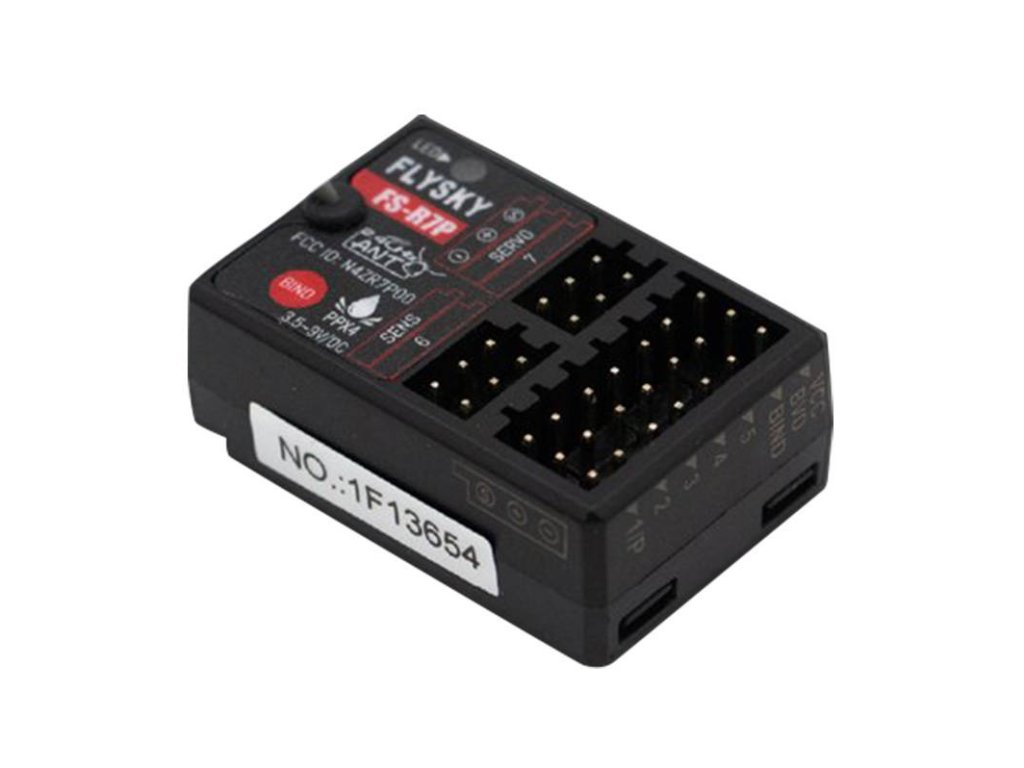 sedmikanálový přijímač FS-R7P pracuje na frekvenci 2,4 GHz. Má dosah až 300 m na povrchu. Jeho rozměry jsou pouze 35 x 23,3 x 13,3 mm a váží pouhých 8 g. Je určen pro vysílače FS-G4P a FS-G7P a používá stabilní protokol ANT. Podporuje indikátor výkonu RSSI a poskytuje vodotěsnost na úrovni PPX4.