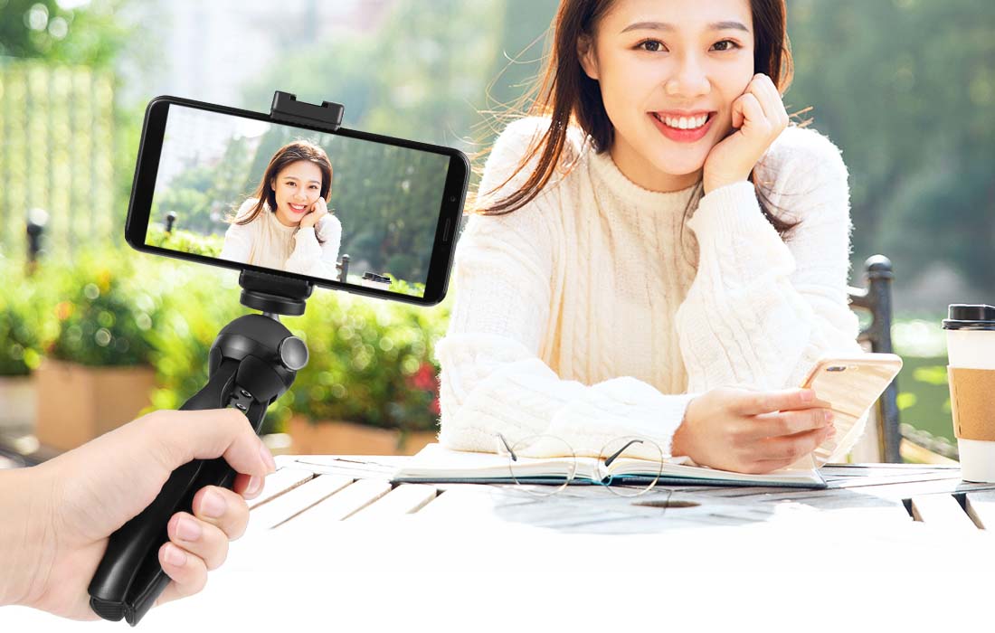 Stativ je vybaven lampou LED, dvouvstupovou zásuvkou pro telefon, stolním stojanem a úložnou brašnou, které v kombinaci s telefonem nebo fotoaparátem vytvářejí sadu připravenou k použití.