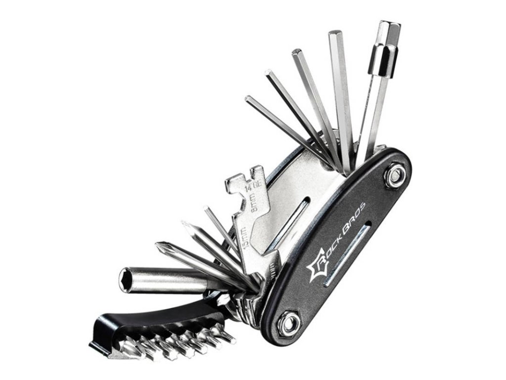 Už se nemusíte bát, že vám nečekaná porucha zkazí výlet na kole a vy budete muset jít domů pěšky. Multifunkční kapesní nůž Rockbros vám pomůže opravit většinu drobných poruch! Tento praktický multitool nabízí až 16 nástrojů v jednom - včetně imbusových klíčů, sady kapesních klíčů, šroubováků a nástrčných hlavic. Navíc je vyroben z odolné uhlíkové oceli a má přenosný design.