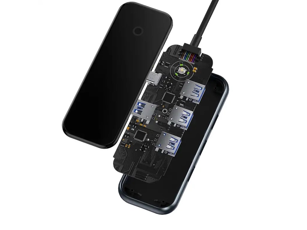 Malé rozměry a hmotnost zařízení znamenají, že si jej můžete vzít s sebou, kamkoli půjdete. Součástí balení je praktické pouzdro pro snadnou přepravu a skladování. Světelný indikátor vás informuje o provozním stavu a silikonové prvky zabraňují klouzání rozbočovače po hladkých površích. Je vyroben z odolného materiálu odolného proti opotřebení, který dokonale odvádí teplo z vnitřku adaptéru. Za zmínku stojí také moderní a stylový design.