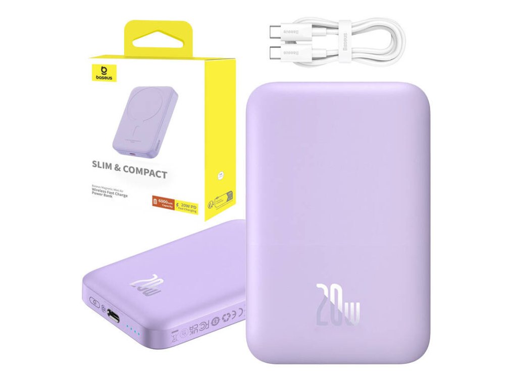 Powerbanka Baseus Magnetic Mini 6000 mAh 20 W (fialová)
