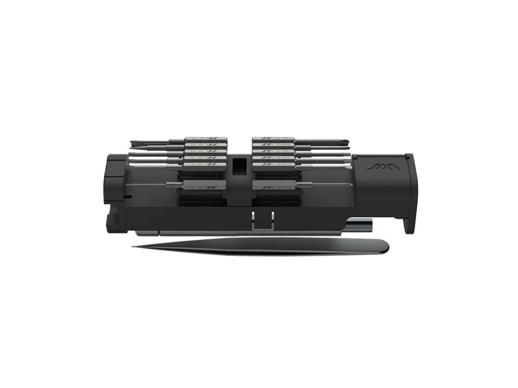 Sada obsahuje rukojeť, 14 bitů, pinzetu a robustní pouzdro s funkcí magnetizéru a držákem šroubů. Díky tomu je ideální pro údržbářské práce na malých elektronických součástkách. Pokud hledáte nástroj, který vám pomůže při montáži a demontáži chytrých telefonů, hraček nebo jiných zařízení, je sada JM-GNT18 určena právě vám!