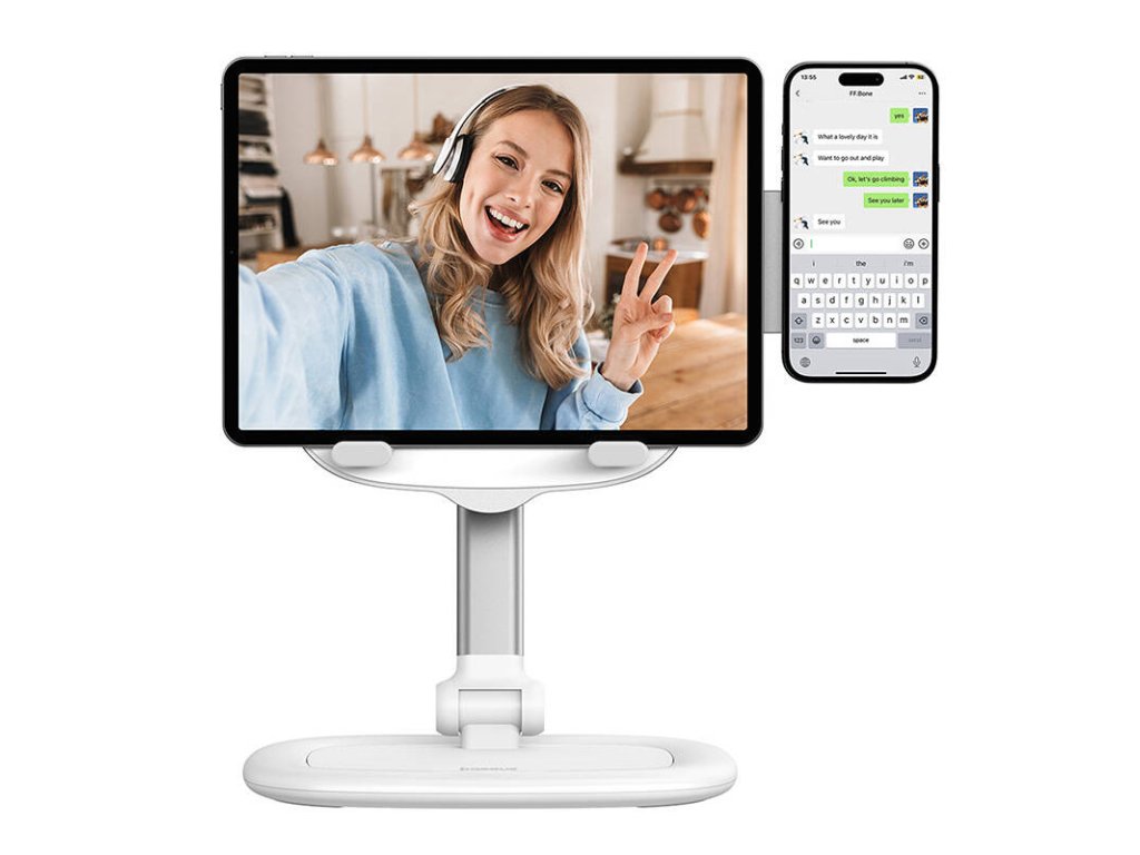 Baseus Mořská mušle se bude dobře hodit na kreslení, online kurzy, sledování videí nebo domácí cvičení. Nabízí prostor pro tablet a iPhone, takže můžete používat 2 zařízení současně. Umožňuje také nastavit úhel a výšku, takže si můžete přizpůsobit polohu zařízení.