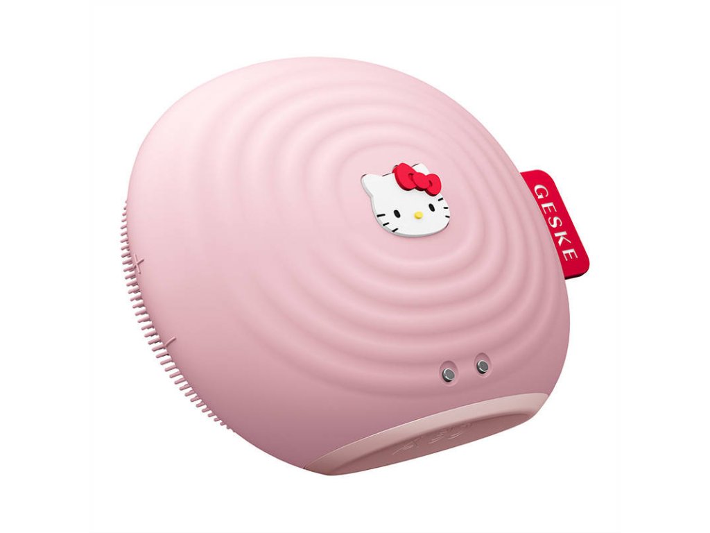 Sonický kartáček na čištění obličeje 4 v 1 Geske s aplikací (růžový s motivem Hello Kitty).
