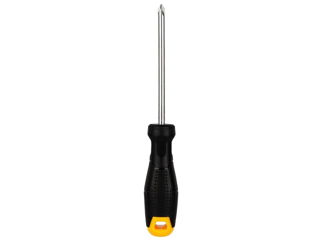 Praktický a robustní křížový šroubovák v černé barvě. Rukojeť výrobku je vyrobena z vysoce kvalitního plastu. Je vybaven praktickým otvorem, který umožňuje zavěšení například na nástěnku. Šroubovák skvěle padne do ruky a jeho používání je mimořádně pohodlné.