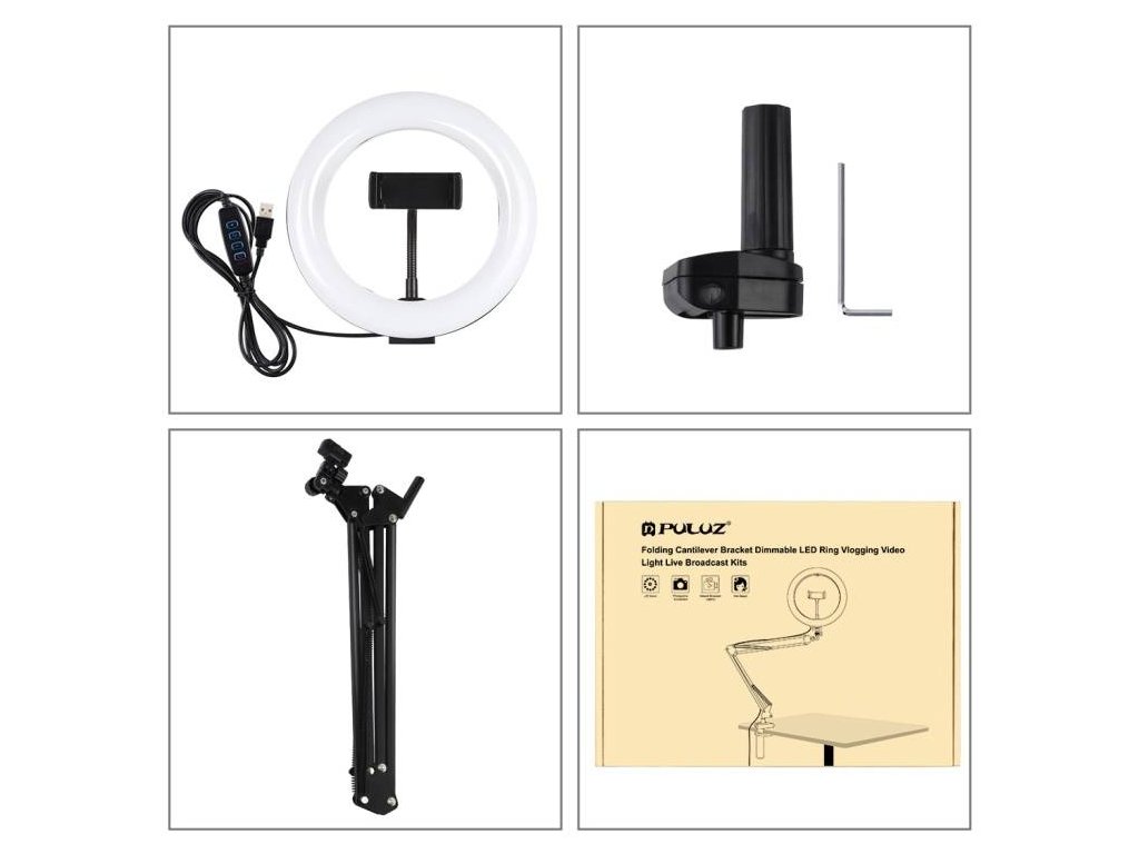 Stolní ramenní stojan Puluz s 20cm LED kroužkem pro záznam videa PKT3089B