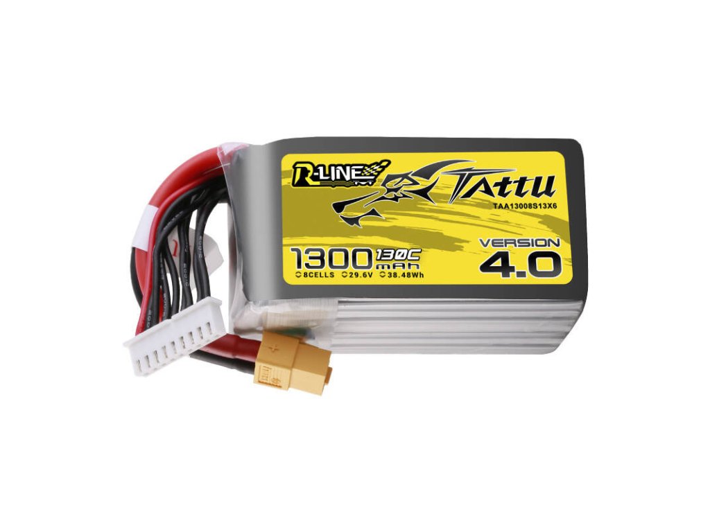 Tattu R-Line verze 4.0 1300mAh 8S 29,6V 130C LiPo baterie jistě ovládne všechny FPV závodníky a hardcore freestylisty. R-Line je zcela nová produktová řada navržená speciálně pro profesionální FPV závody. Nabízejí vyšší kapacitu, nižší vnitřní odpor a nižší přistávací teploty. Jsou účinnější než jakákoli grafenová baterie.