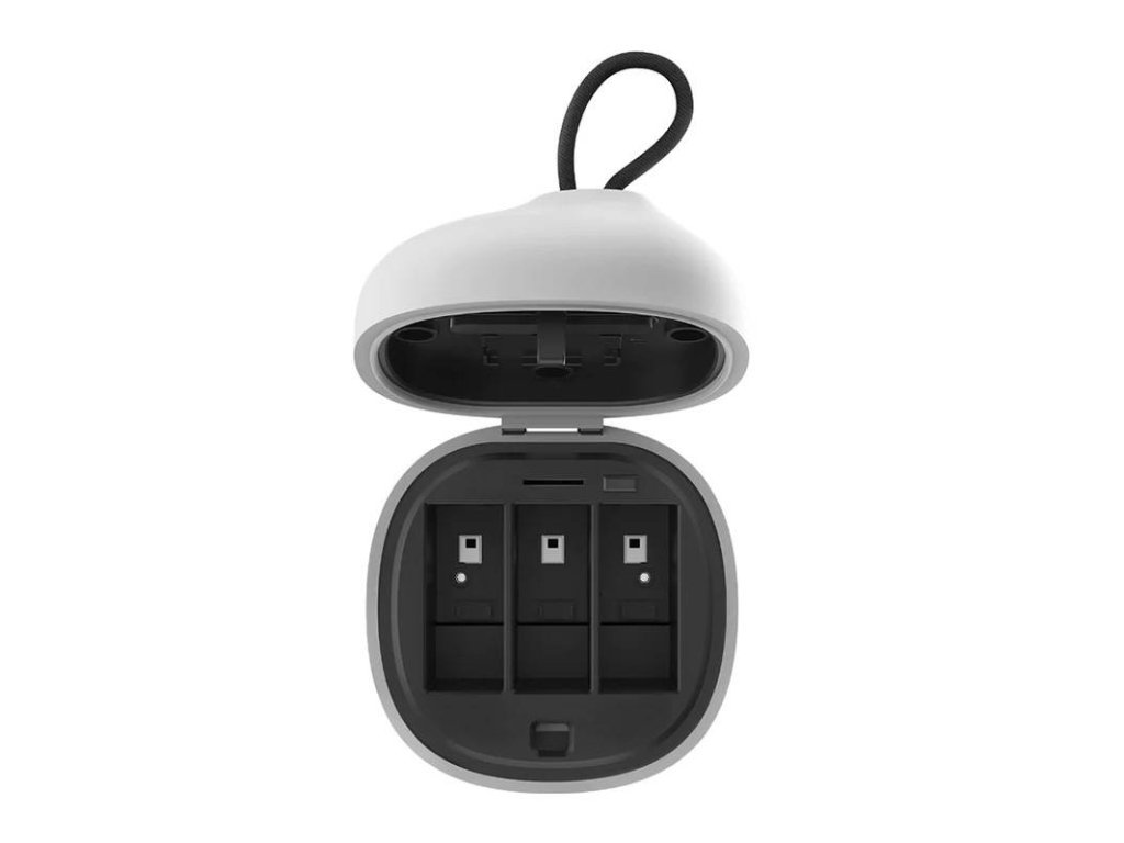 Nabíječka má stylový a zároveň funkční design. Lze do ní uložit 3 baterie a 3 karty TF. Díky svým kompaktním rozměrům, vážícím pouhých 147,6 g, se snadno vejde do batohu nebo kabelky. Přenášení zařízení usnadňuje krátká šňůrka, pomocí které jej můžete připevnit k tašce nebo zavěsit na prst. Díky vodotěsnosti IP54 se navíc nemusíte bát, že byste nabíječku omylem potřísnili.