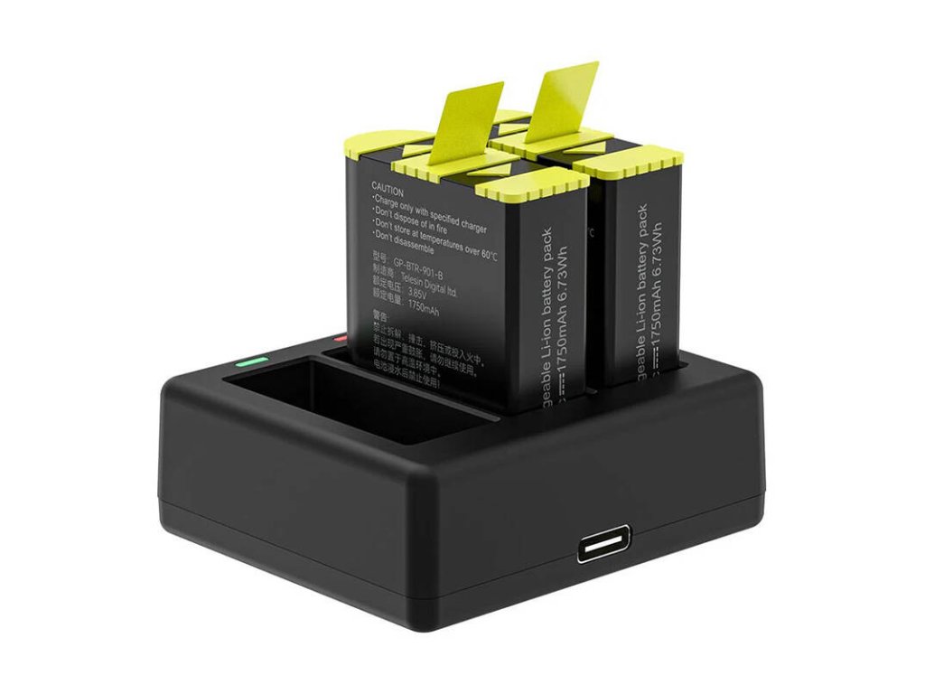 Dostupné baterie v sadě mají kapacitu 1750 mAh, což znamená dobu záznamu až 112 minut (při vytváření videí 4K/30FPS). Jsou plně kompatibilní s kamerami GoPro Hero 9, GoPro Hero 10, GoPro Hero 11, GoPro Hero 12 i s originálními bateriemi. S nabíječkou Telesin je můžete pohodlně nabíjet všechny dohromady.