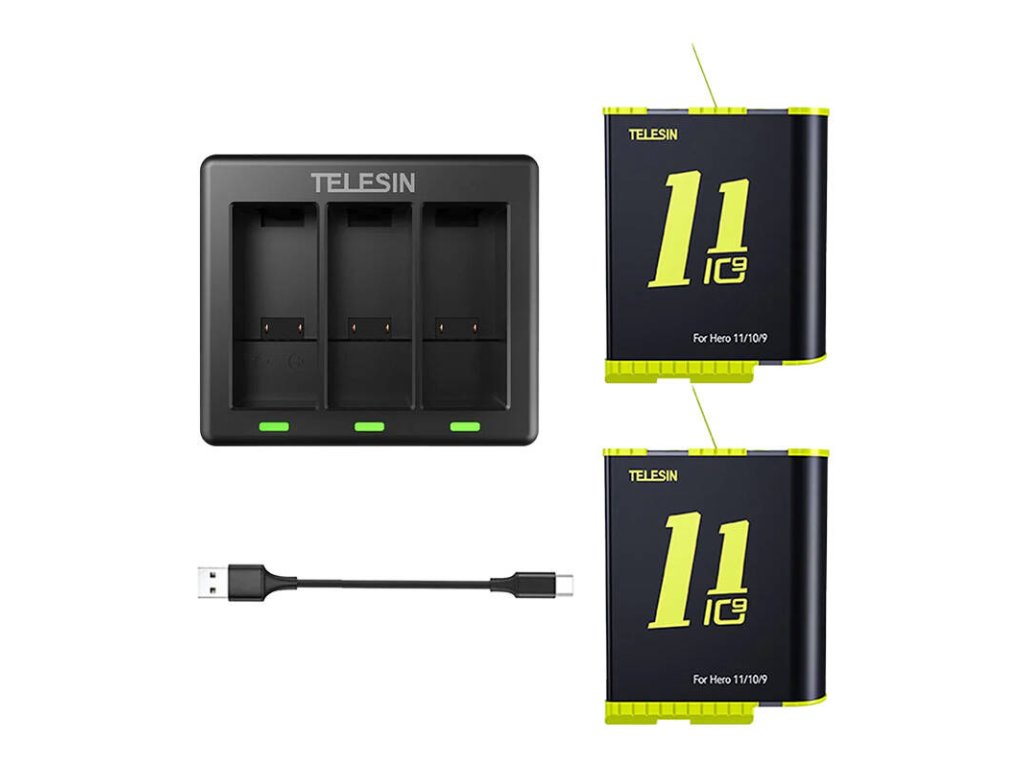 Tříkanálová nabíječka Telesin + 2 baterie pro GoPro Hero 9 / 10 / 11 / 12 (GP-BTR-903-B)