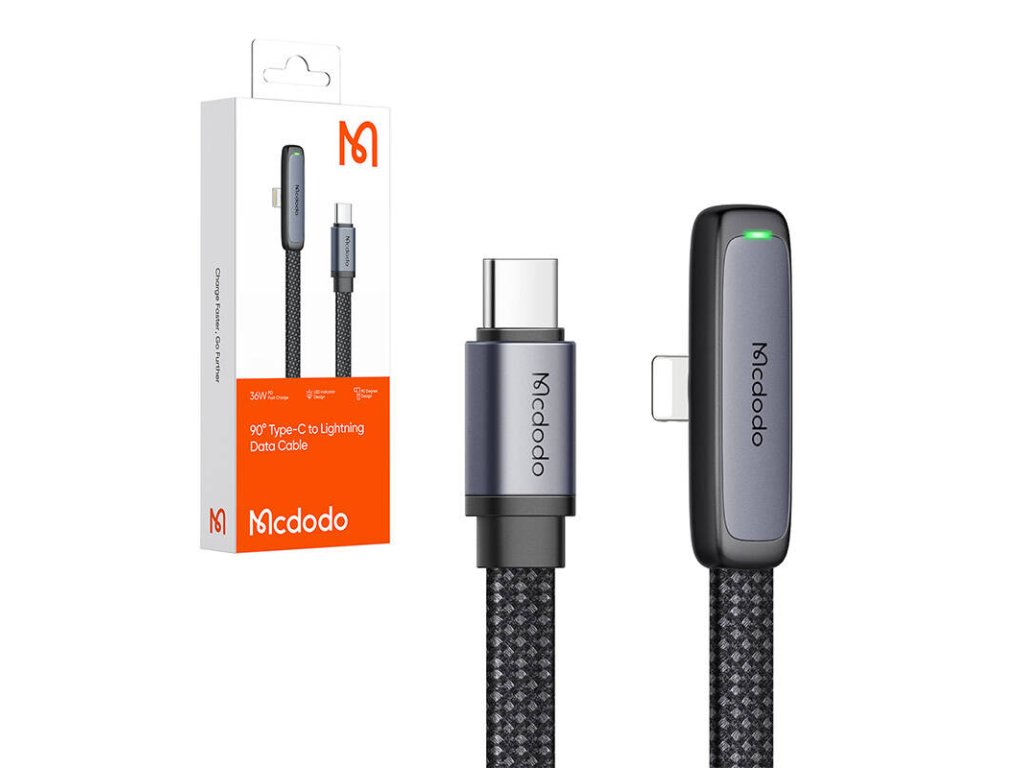 Mcdodo CA-3351,1,8 m (černý) kabel USB-C k blesku s úhlem.