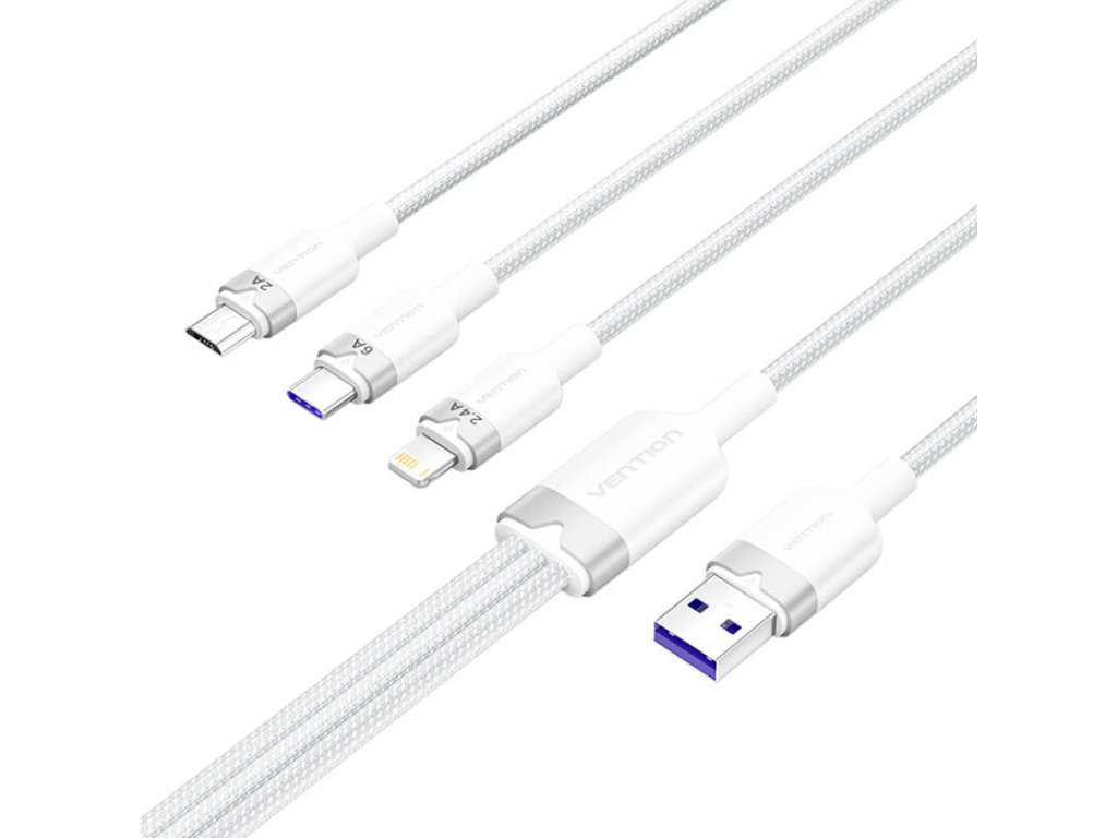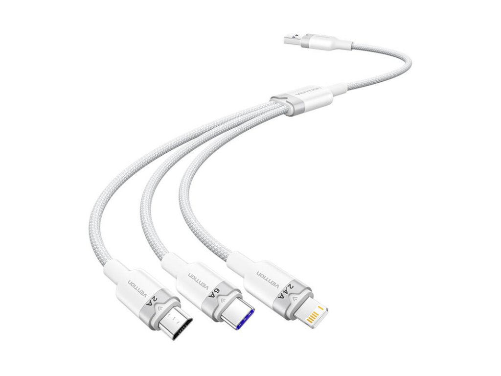 Kabel USB 2.0 A na 3v1 6A Vention CTRWG 1,5 m (bílý).