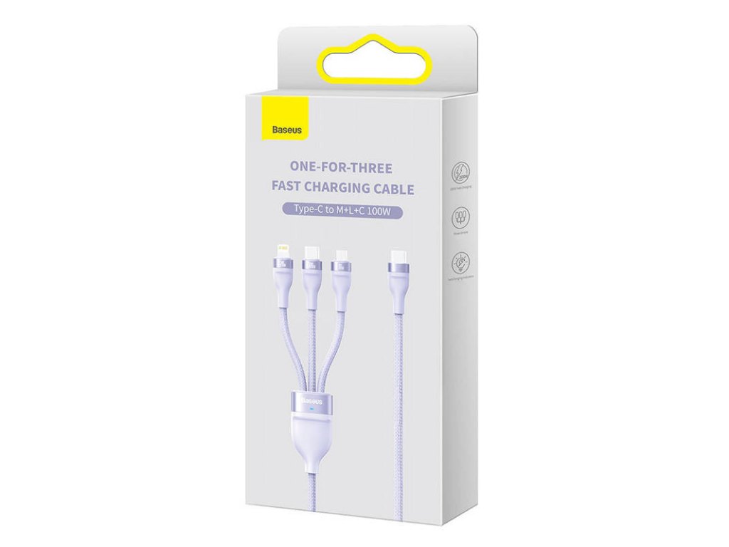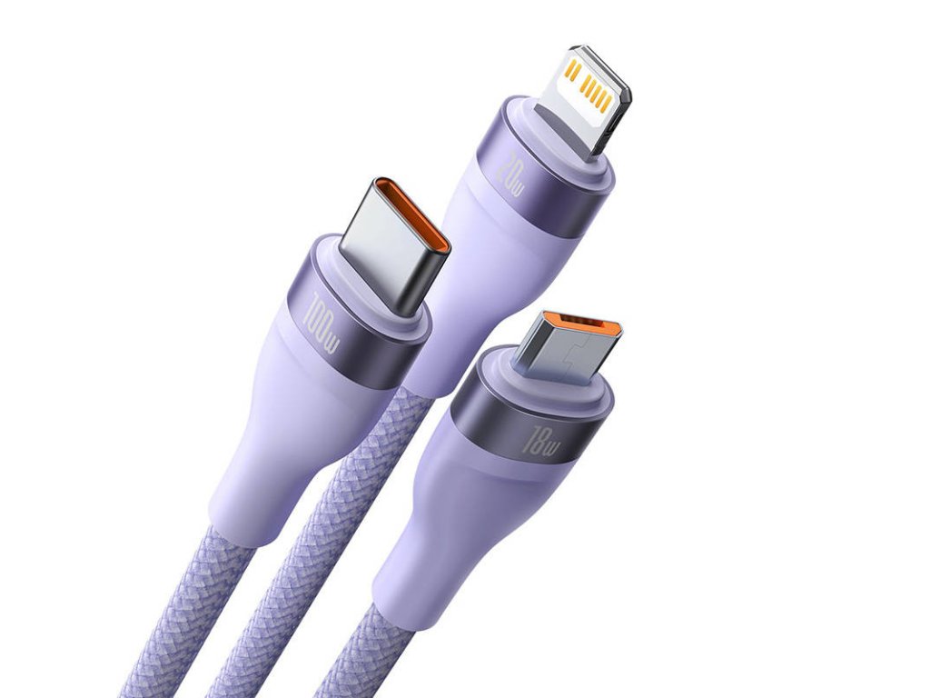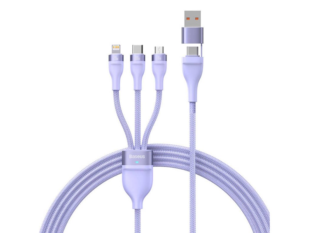 USB kabel 3v1 Baseus Flash Series 2, USB-C + micro USB + Lightning, 100 W, 1,5 m (fialový)