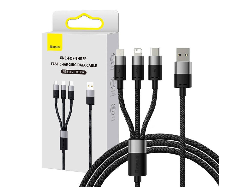 Baseus StarSpeed USB na M+L+C 3,5A rychlonabíjecí kabel 0,6M (černý)