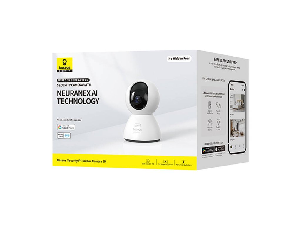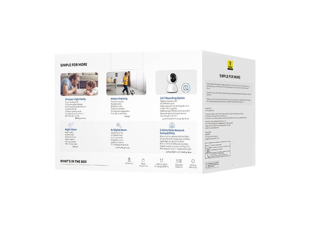 Kamera Baseus P1 3K se vyznačuje elegantním, minimalistickým designem, který dokonale zapadne do každého interiéru. Kompaktní rozměry kamery umožňují její snadnou instalaci na požadované místo, aniž by bylo nutné měnit uspořádání prostoru. Díky možnosti otáčení o 360 stupňů a naklápění o 90 stupňů můžete kameru přizpůsobit svým potřebám a zachytit každý důležitý detail.